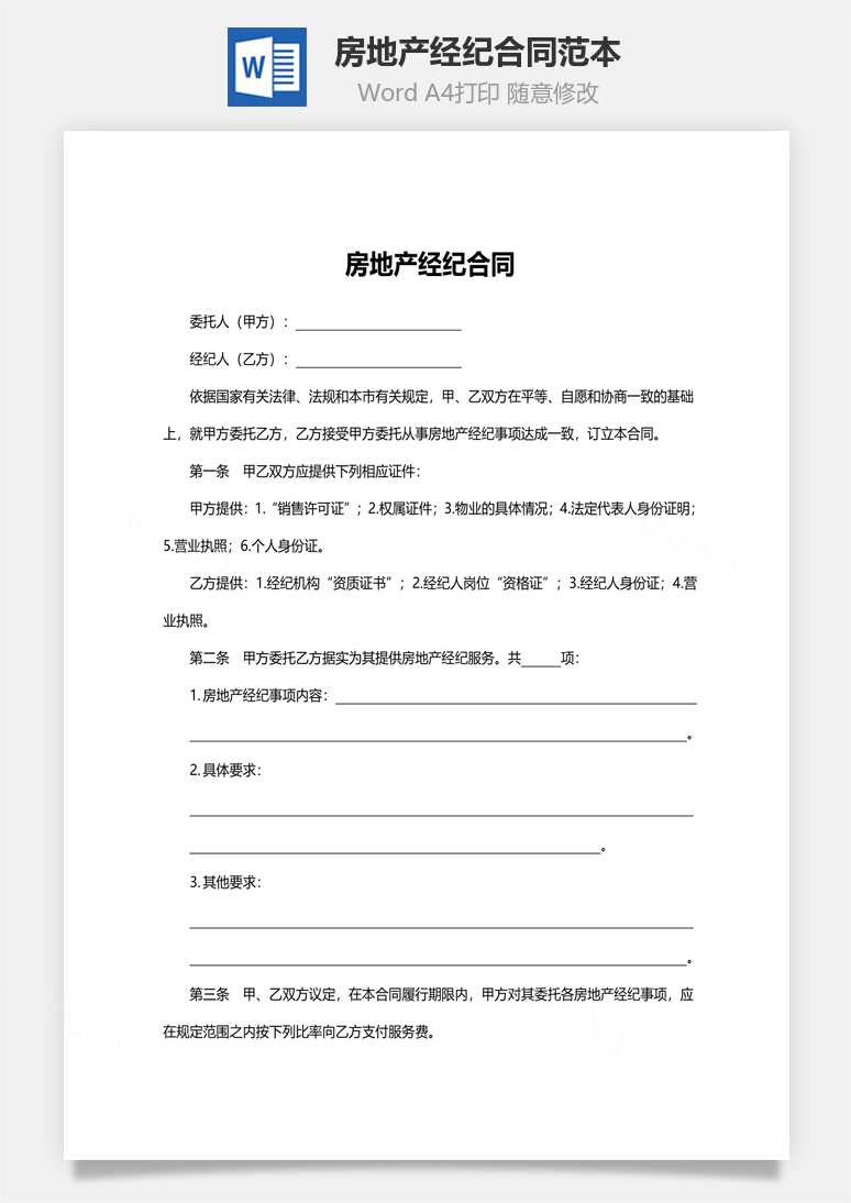 本模板为房地产经纪合同范本,文字图片可以直接替换,使用简单方便