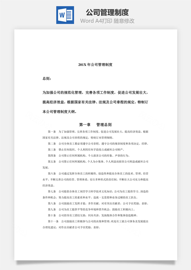 本模板为公司管理制度Word文档,文字图片可以直接替换,使用简单方便
