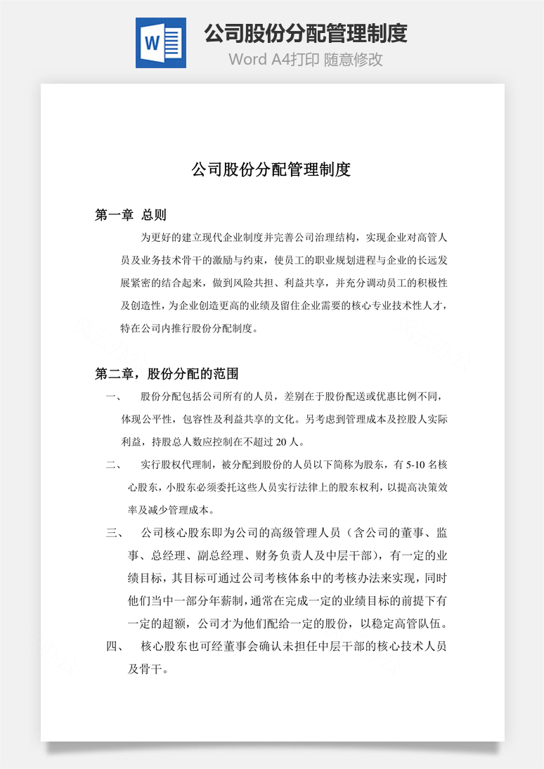 本模板为公司股份分配管理制度Word文档,文字图片可以直接替换,使用简单方便