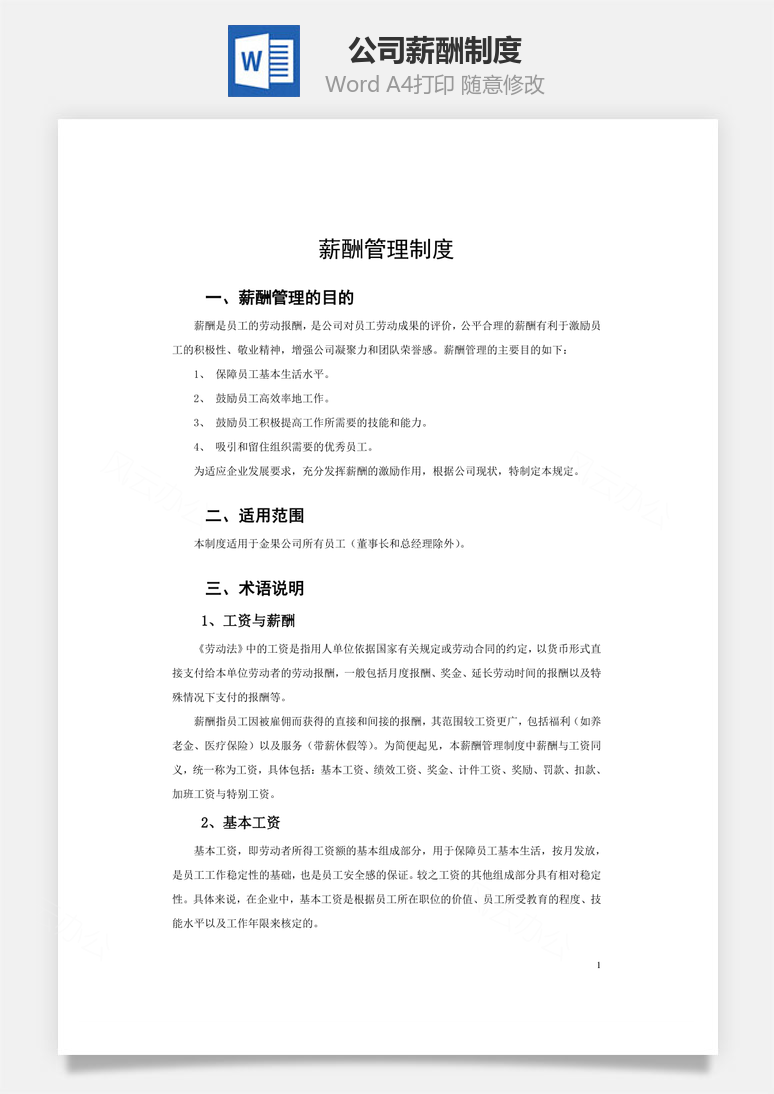 本模板为公司薪酬制度word文档,文字图片可以直接替换,使用简单方便